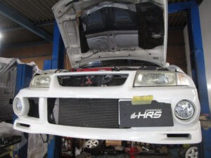 新車発売から25年が経過するランエボ6、ネオクラシックの域にきていて、亀裂どころかマウントゴムがちぎれてリアデフが暴れてしまうので、HRSでは純正より数倍の耐久性に優れる強化タイプのマウントへ交換します