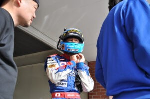 そう言えば、遠征のときのnakajiさんはいつもなにかしら大きな 荷物を抱えているような気がする。タイムアタックの前日、HRSに 駆けつける時は、名前はよくわからないがいろんな道具を いつも大きなアタッシュに詰めて持っていた。アメリカ遠征の時もやっぱり 大きなパーツを抱えていた。きっと目的に向かって最後の最後まで 全力を尽くして望むという姿勢の現れだと思う。
